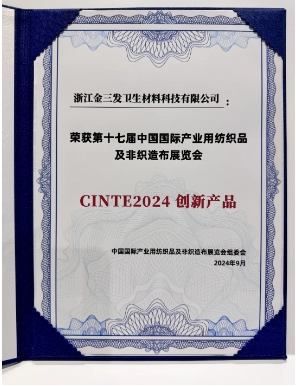 Zhejiang Kingsafe Sanitary Material Technology Co., Ltd. tarafından sunulan "Yeşil Süper Yumuşak Sandviç Spunlace Nonwoven", yeşil kalkınma inovasyon ürününü kazandı.