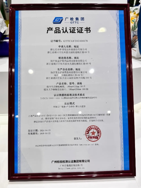 CINTE24'ün ilk gününde, "biyolojik olarak parçalanabilir" sertifikalı işletmelerin üçüncü partisi ve ürün tanıtım töreni Şanghay Yeni Uluslararası Fuar Merkezi'nde gerçekleştirildi. Kingsafe Group & Youquan Co., Ltd., Nonwoven Endüstrisi Yeşil Kalkınma İnovasyon İttifakı'nın başkan yardımcısı olarak hizmet vererek sektörün sürdürülebilir gelişimini aktif olarak desteklemektedir ve geliştirilen ve piyasaya sürülen ıslak tuvalet kağıdı "biyolojik olarak parçalanabilir" testini geçmiştir. " Yeşil kalkınmayı teşvik etmek için endüstrinin araştırılmasına ve yenilikçiliğine tanıklık eden sertifikasyon.