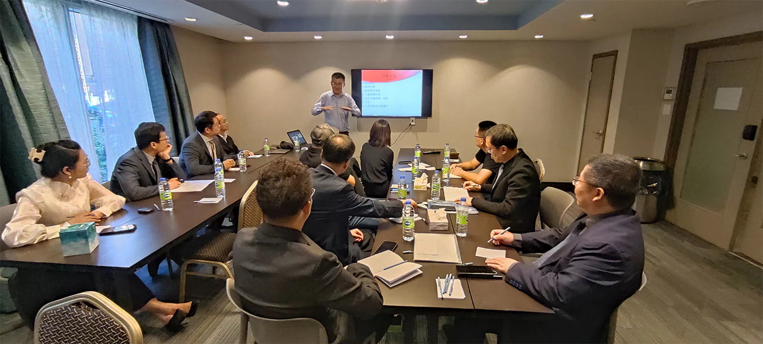 Heyet, Montreal'de Kanadalı Tiandingfeng şirketi hakkında araştırma yaptı ve ilgili şirket yetkilileriyle görüşmelerde bulundu ve fikir alışverişinde bulundu. Tiandingfeng Company'nin pazarlama müdürü Sun Xiangjie ve başkan Xiang Feng, şirketin yurtdışı yatırımının arka planını ve Kanada'daki yatırım durumunu anlattı. Ayrıca Kuzey Amerika'da yatırım yapmanın avantaj ve dezavantajlarını da detaylı bir şekilde paylaşarak Çinli işletmelerin yurtdışında yatırım yapmasına yönelik önerilerde bulundular.